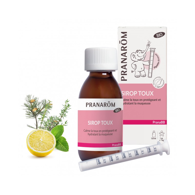 Le Sirop toux PRANABB est un dispositif médical. Ce sirop est indiqué pour calmer tous les types de toux à partir de 1 an. Il est formulé à partir d’ingrédients d’origine naturelle dont des huiles essentielles qui donnent un goût agréable adapté aux plus petits. Sa formule a été spécialement développée pour constituer un effet barrière. Il forme un film protecteur qui adhère à la muqueuse et le protège du contact avec les agents irritants.