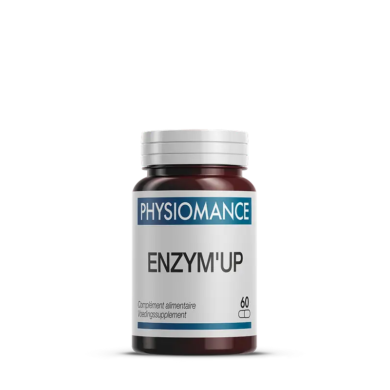 PHYSIOMANCE ENZYM’UP apporte pour 3 gélules, un complexe de 14 enzymes digestives :