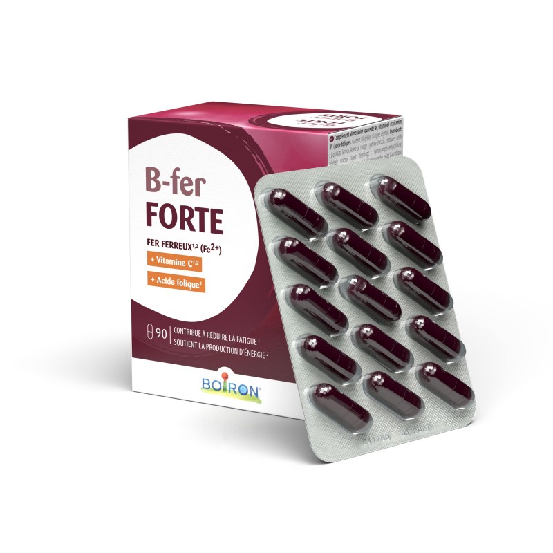 B-fer FORTE est recommandé pour les personnes ayant des besoins en fer plus importants. Il contribue à palier une carence en fer et à rétablir les niveaux d’énergie en complément d'une alimentation saine et équilibrée.