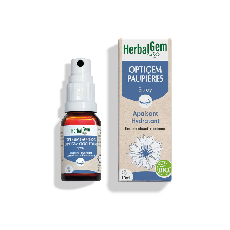 OPTIGEM PAUPIÈRES est un indispensable pour les paupières fatiguées ou gonflées par une exposition prolongée devant les écrans, la pollution ou les allergies. Il apporte un rafraîchissement instantané, un soulagement grâce à la présence de l'eau de bleuet et de l'ectoïne, véritable ingrédient innovant à haut pouvoir hydratant et apaisant.