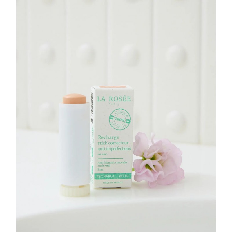 Notre Stick correcteur teinté anti-imperfections rechargeable au zinc, camoufle, purifie et corrige les imperfections du visage.