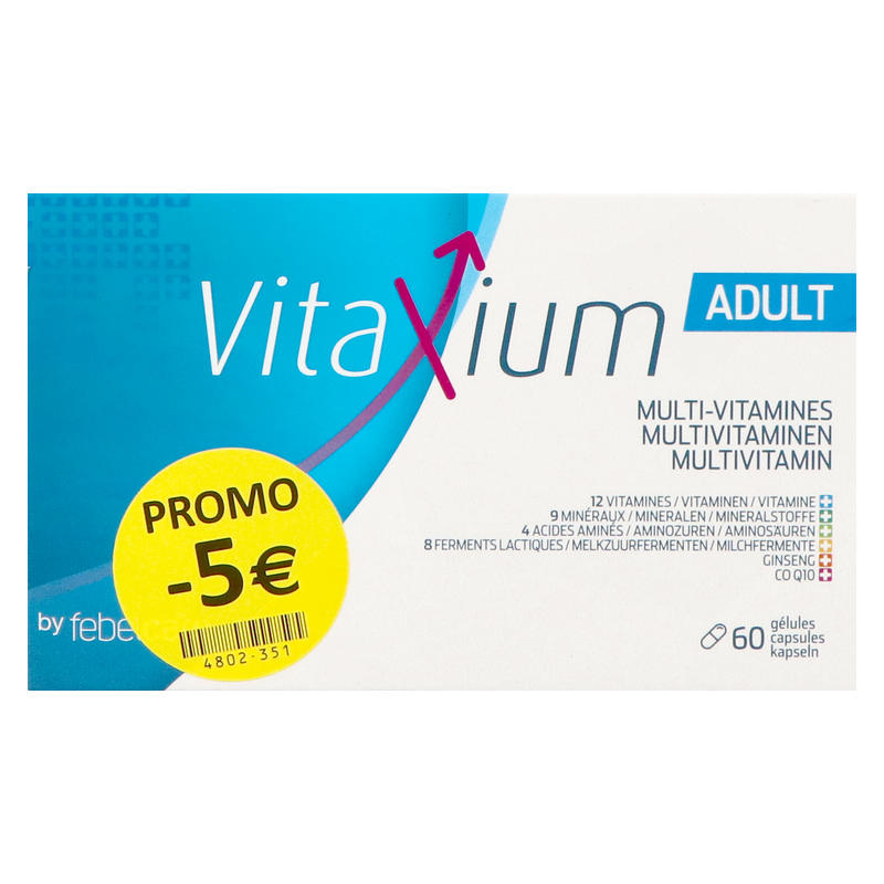 Vitaxium Adult est un complément alimentaire formulé pour les adultes et adolescents à partir de 12 ans, destiné à donner un regain d'énergie, de contribuer à réduire la fatigue et de contribuer au fonctionnement normal du système immunitaire.