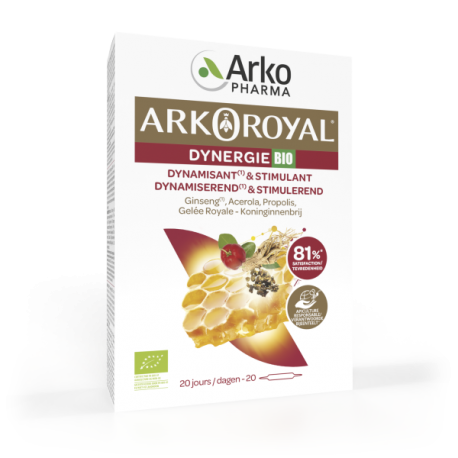 ARKOROYAL® Dynergie BIO est un complément alimentaire à base de Ginseng, Gelée Royale, Acérola et Propolis