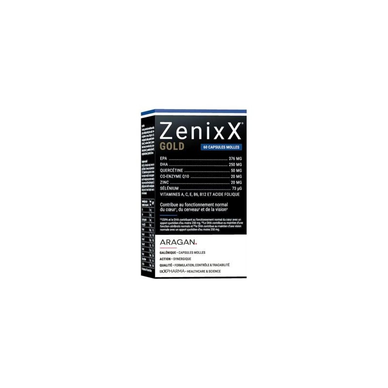 ZENIXX GOLD® a été formulé pour apporter un apport équilibré en EPA et DHA. Cette formule est très complète et associe un complexe de 6 vitamines, 2 minéraux, de la quercétine et de la coenzyme Q10.