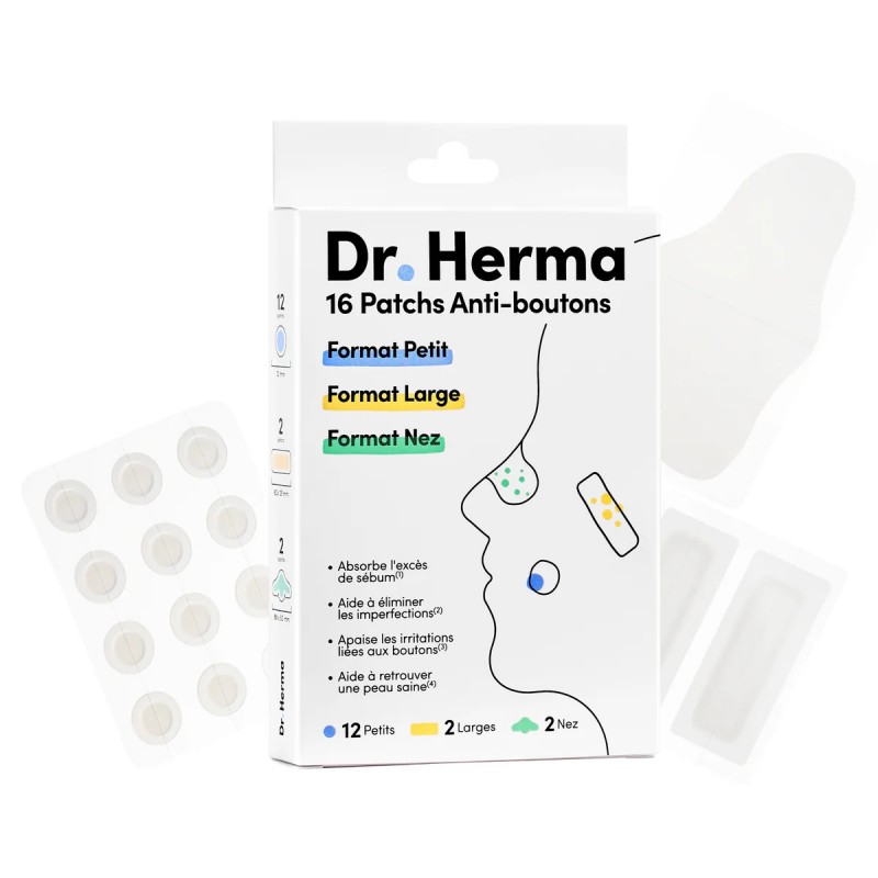 Le Patch Anti-Bouton Format Mix Dr. Herma offre une solution complète pour combattre les imperfections de la peau. Il contient trois formats de patchs (12 petits, 2 grands, 2 pour le nez), spécialement conçus pour traiter les boutons en absorbant l'excès de sébum et en accélérant la cicatrisation grâce à la technologie hydrocolloïde. Chaque format est conçu pour répondre à des besoins précis, garantissant ainsi une application ciblée et discrète.