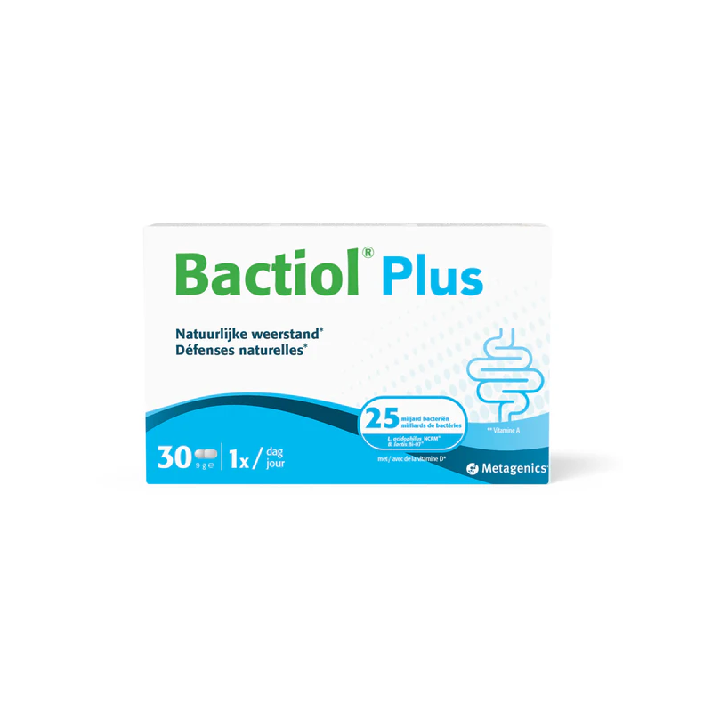 Bactiol® Plus contient de la vitamine D pour soutenir les défenses naturelles et de la vitamine A qui contribue au maintien de muqueuses normales, comme dans l’intestin.